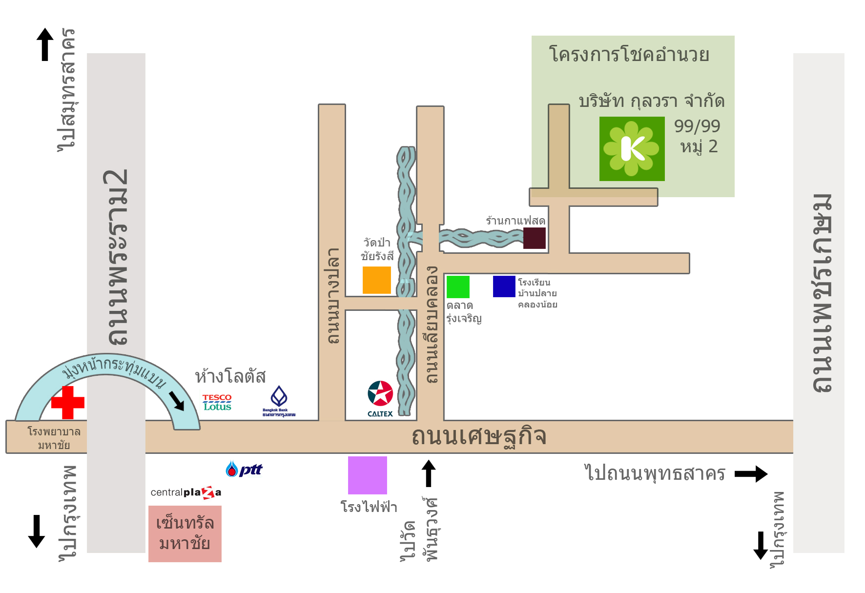 99/99 หมู่ 2 ตำบลท่าเสา อำเภอกระทุ่มแบน จังหวัดสมุทรสาคร 74110